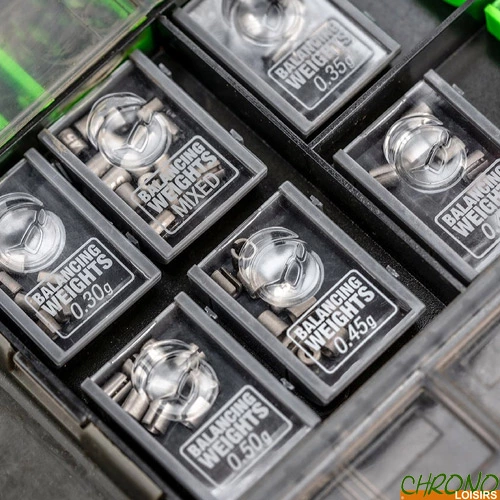 Disponible en 5 poids (de 0.30g à 0.50g par tranche de 0.05g), chaque produit individuel étant gravé au laser avec un numéro pour identifier le poids, c’est-à-dire que 0.30g est étiqueté comme 30. En outre, un “paquet mixte” est disponible, contenant 15 poids (3 de chaque taille). Avec le pack mixte, vous pouvez essayer tous les poids jusqu’à ce que vous en trouviez un qui soit parfait, puis utiliser la même taille à chaque fois pour cet appât en particulier.