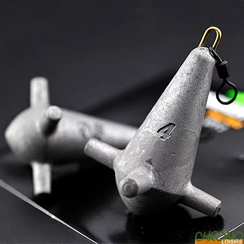Le plomb marker fait toujours partie intégrante de notre gamme et il reste très efficace pour balayer les fonds à travers les algues, mais le « Pronged lead » vous permettra quant à lui d’affiner encore votre recherche sur la zone pêchée.
